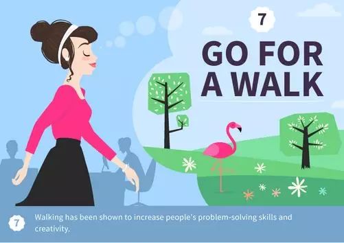 研究证明,散步有助于增强人们的创造力和解决问题的能力。
