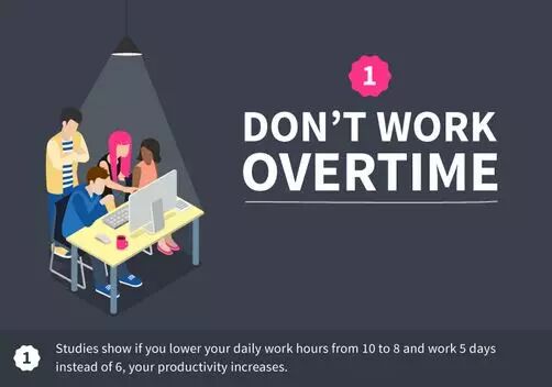 科学研究表明,如果员工的工作时间能从每周6天,每天10小时,减少到每周5天,每天7~8小时,工作效率将会有所提高。
